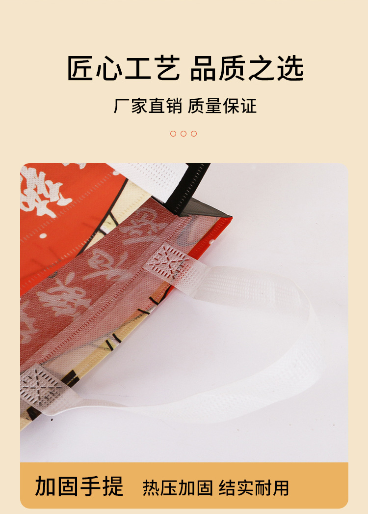 3. 材质选择:无纺布覆膜外卖袋的材质有多种选择,如PP无纺布、PE无纺布、复合无纺布等。客户需要根据使用环境和要求选择合适的材质。